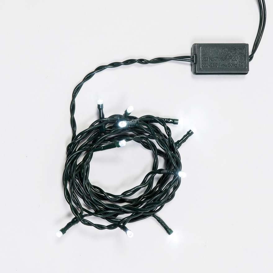 Catena 10 LED Bianco Ghiaccio – luce fissa – passo lampade 20 cm – L 2 m – 230V – uso interno