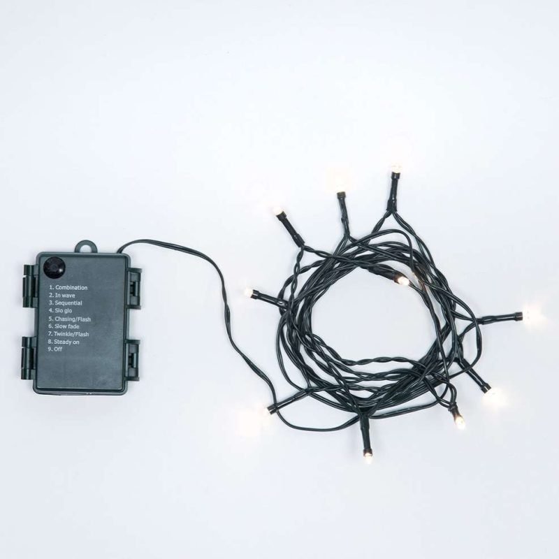 Catena 10 LED Luce Calda – giochi luce con timer (6h ON/18h OFF) – L 2 m – a batteria – uso esterno