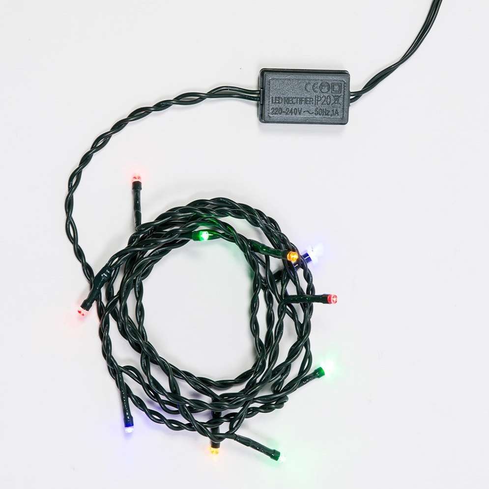 Catena 10 LED Multicolor – luce fissa – passo lampade 20 cm – L 2 m – 230V – uso interno