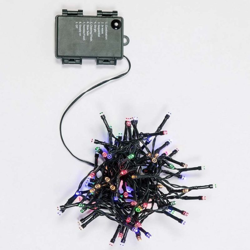 Catena 100 LED Multicolor – giochi luce con timer (6h ON/18h OFF) – L 5 m – a batteria – uso esterno