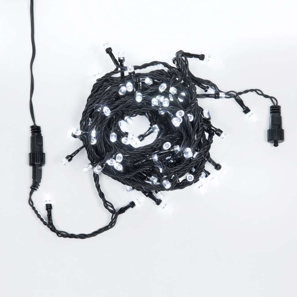 Catena 100 Mega LED bianco ghiaccio 10 m Ø8 mm, filo nero, collegabile. Luci esterne potenti.