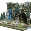 Paesaggio con fiume luminoso, ideale per scenografie dÂ’effetto nel presepe. Illuminazione integrata e struttura artigianale.