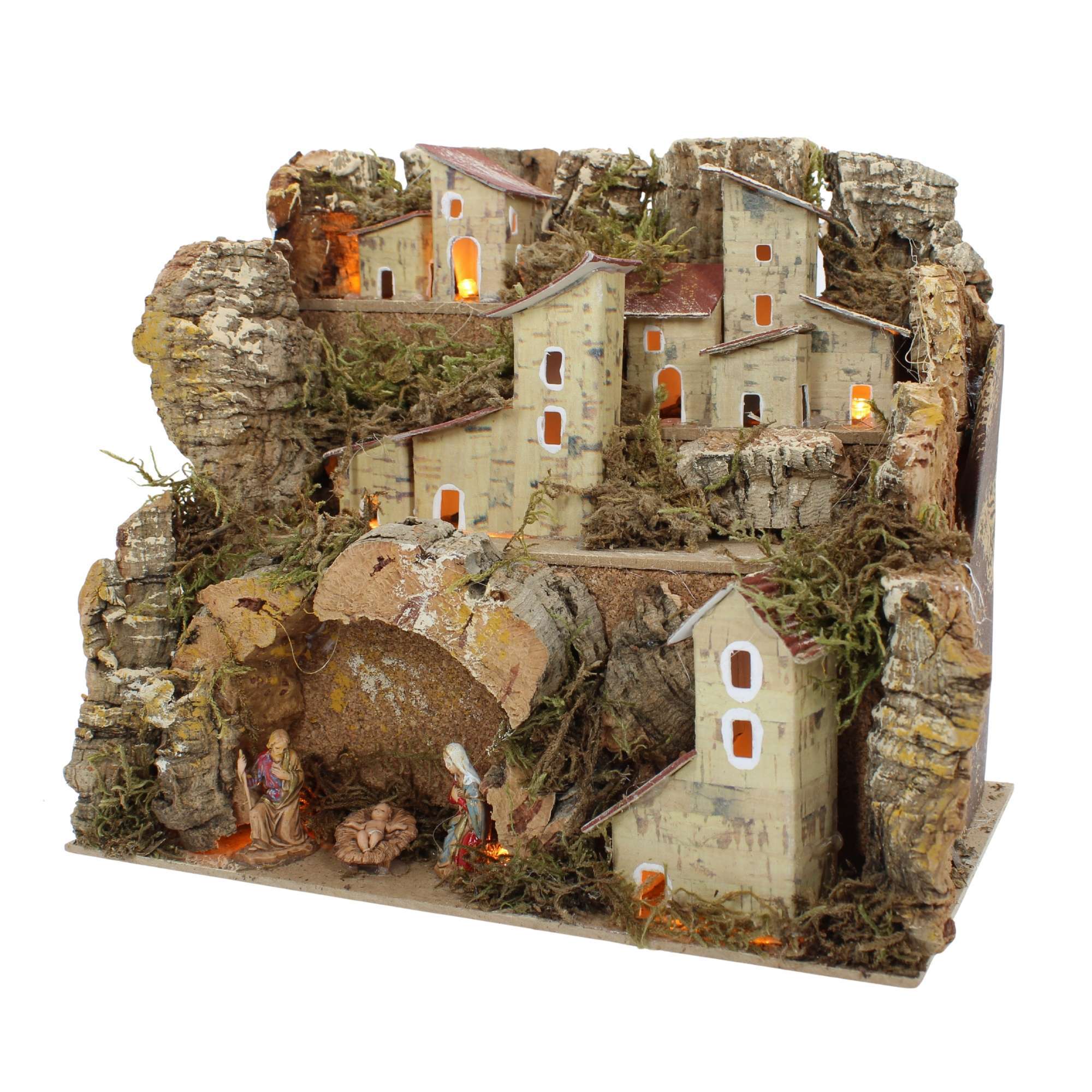 Paesaggio per Presepe con Luci 20x14x18 cm con Personaggi 3,5 cm