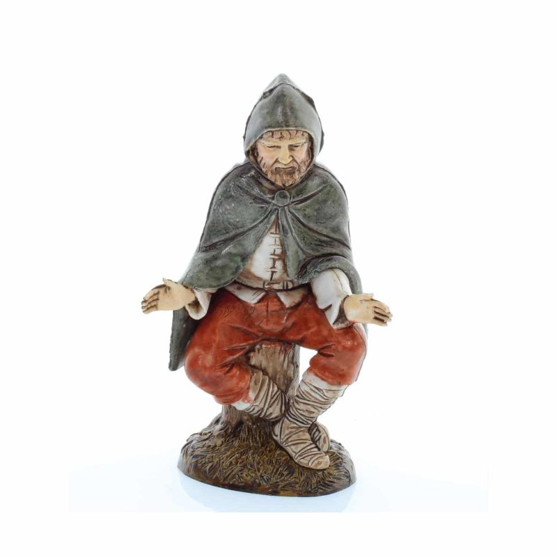 Statua per presepe raffigurante Pastore seduto sul tronco in stile napoletano (12 cm), realizzata in Italia in resistente PVC e dipinta in serigrafia. Creata dallo scultore Martino Landi, protetta da copyright grazie al deposito presso il Ministero per i beni e le attività culturali. Un elemento perfetto per arricchire presepi artigianali con autenticità e stile.