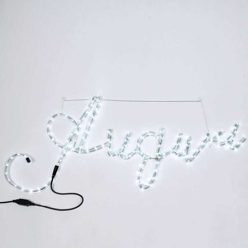 Scritta luminosa Auguri in tubo LED 168 LED bianco ghiaccio 125 cm. Addobbo natalizio da esterno.