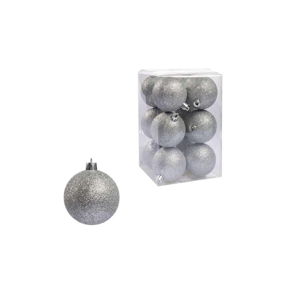 Set 12 sfere glitter Ø 60 mm argento