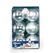 Set 12 sfere Ø 70 mm argento metallizzate satinate in astuccio