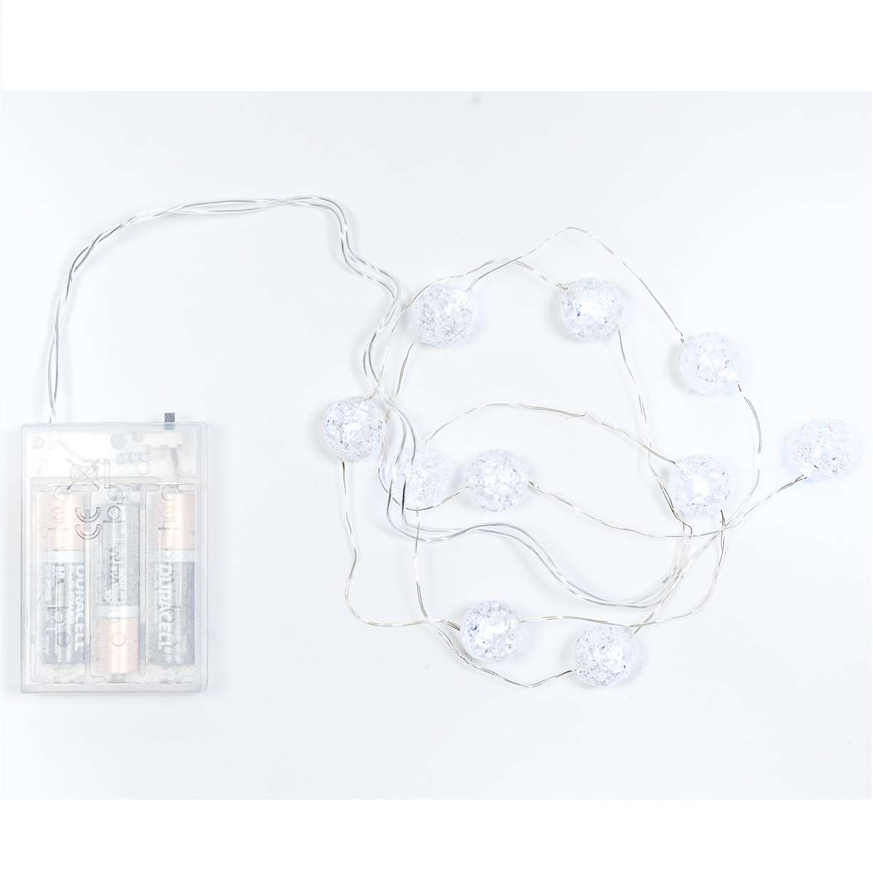 Sferette in acrilico 10 NanoLED chiari, 90 cm, luce fissa, a batteria, uso interno; décor luminoso compatto.